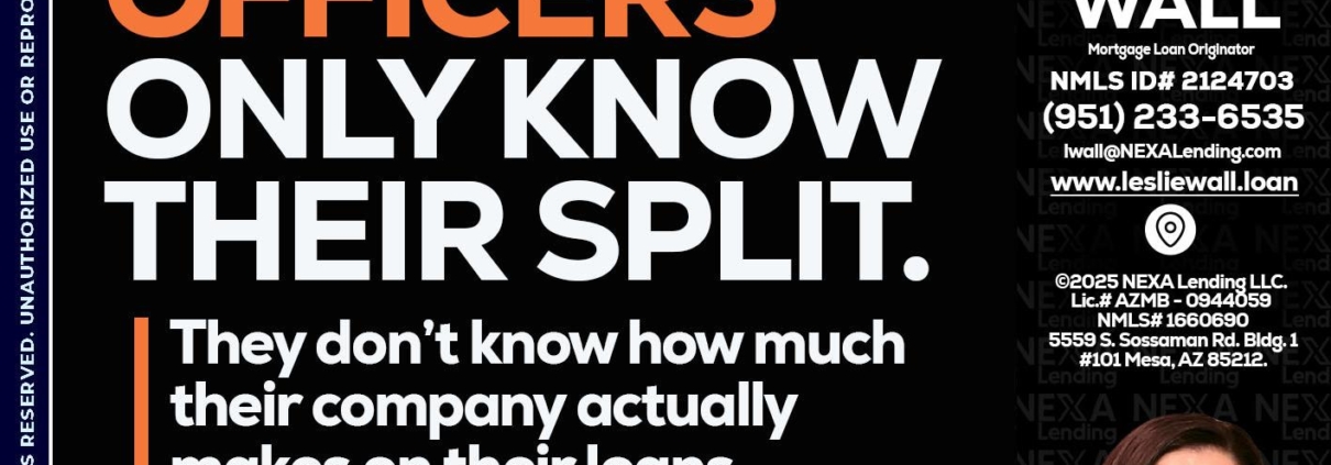 1 OF 3 - Leslie Wall -Mortgage Loan OriginatorHi, my name is Leslie Wall. I’m a Loan Officer with NEXA Lending LLC., offering personalized mortgage solutions, fast customized quotes, great rates and service with integrity.