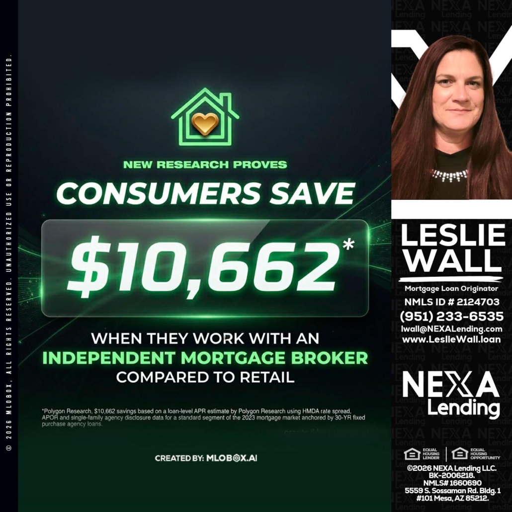 Hi, my name is Leslie Wall. I’m a Loan Officer with NEXA Lending LLC., offering personalized mortgage solutions, fast customized quotes, great rates and service with integrity.