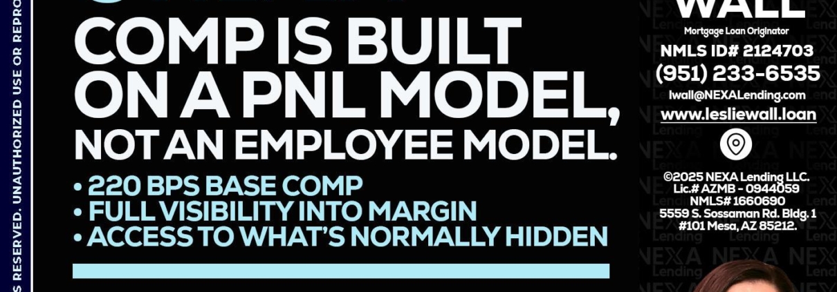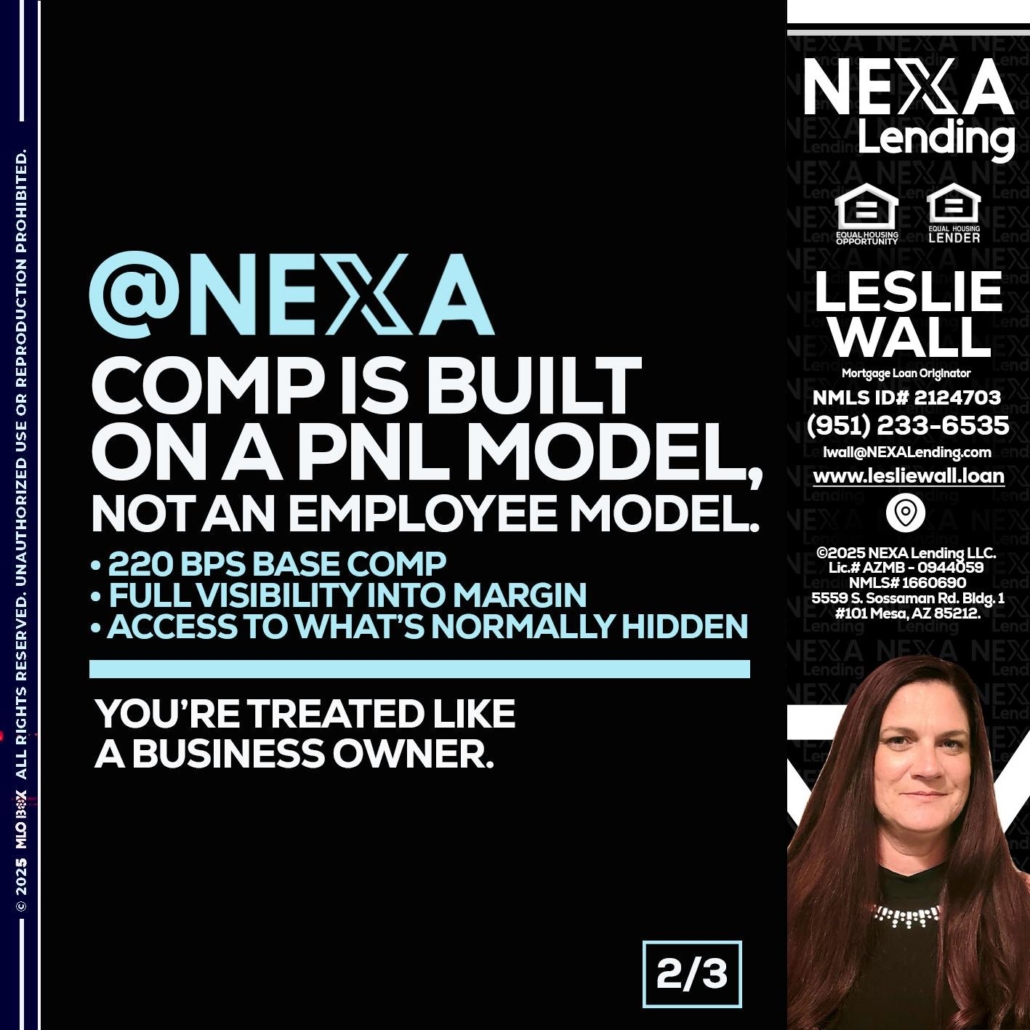 Hi, my name is Leslie Wall. I’m a Loan Officer with NEXA Lending LLC., offering personalized mortgage solutions, fast customized quotes, great rates and service with integrity.