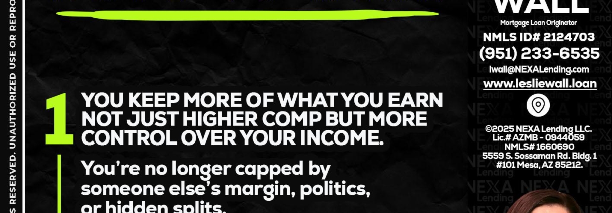 7 THINGS (1) - Leslie Wall -Mortgage Loan OriginatorHi, my name is Leslie Wall. I’m a Loan Officer with NEXA Lending LLC., offering personalized mortgage solutions, fast customized quotes, great rates and service with integrity.