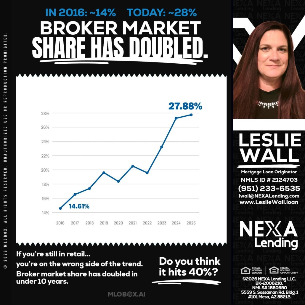Hi, my name is Leslie Wall. I’m a Loan Officer with NEXA Lending LLC., offering personalized mortgage solutions, fast customized quotes, great rates and service with integrity.