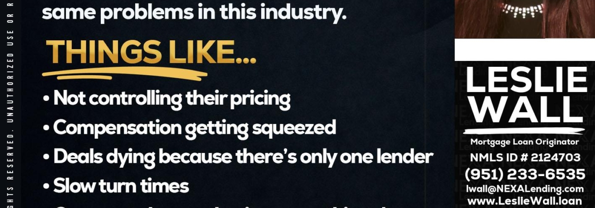 Hi, my name is Leslie Wall. I’m a Loan Officer with NEXA Lending LLC., offering personalized mortgage solutions, fast customized quotes, great rates and service with integrity.