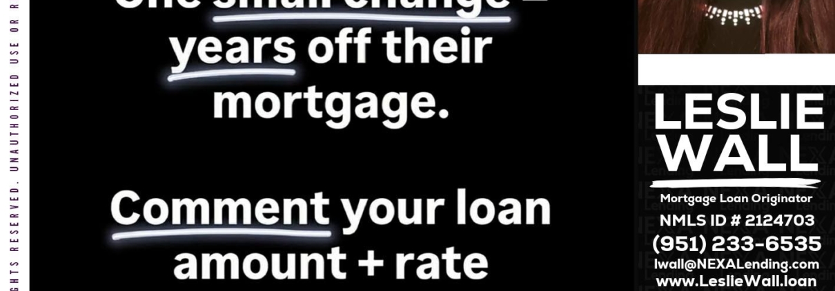 Hi, my name is Leslie Wall. I’m a Loan Officer with NEXA Lending LLC., offering personalized mortgage solutions, fast customized quotes, great rates and service with integrity.