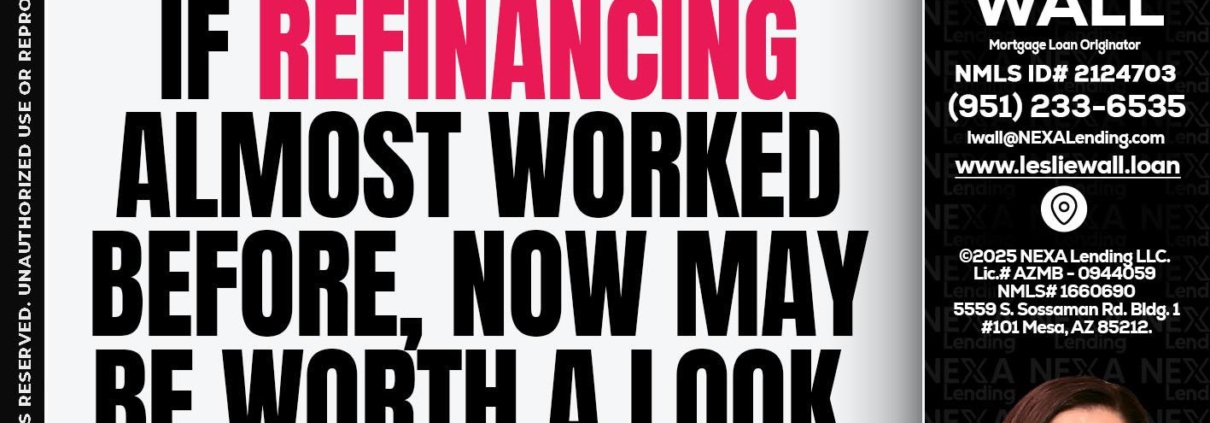 if refinancing - Leslie Wall -Mortgage Loan OriginatorHi, my name is Leslie Wall. I’m a Loan Officer with NEXA Lending LLC., offering personalized mortgage solutions, fast customized quotes, great rates and service with integrity.