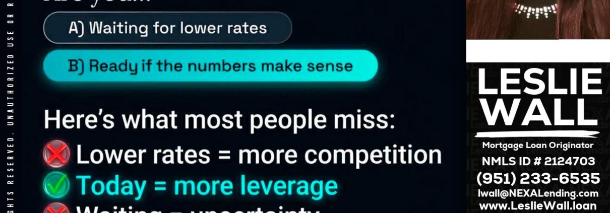 IF YOU ARE - Leslie Wall -Mortgage Loan OriginatorHi, my name is Leslie Wall. I’m a Loan Officer with NEXA Lending LLC., offering personalized mortgage solutions, fast customized quotes, great rates and service with integrity.