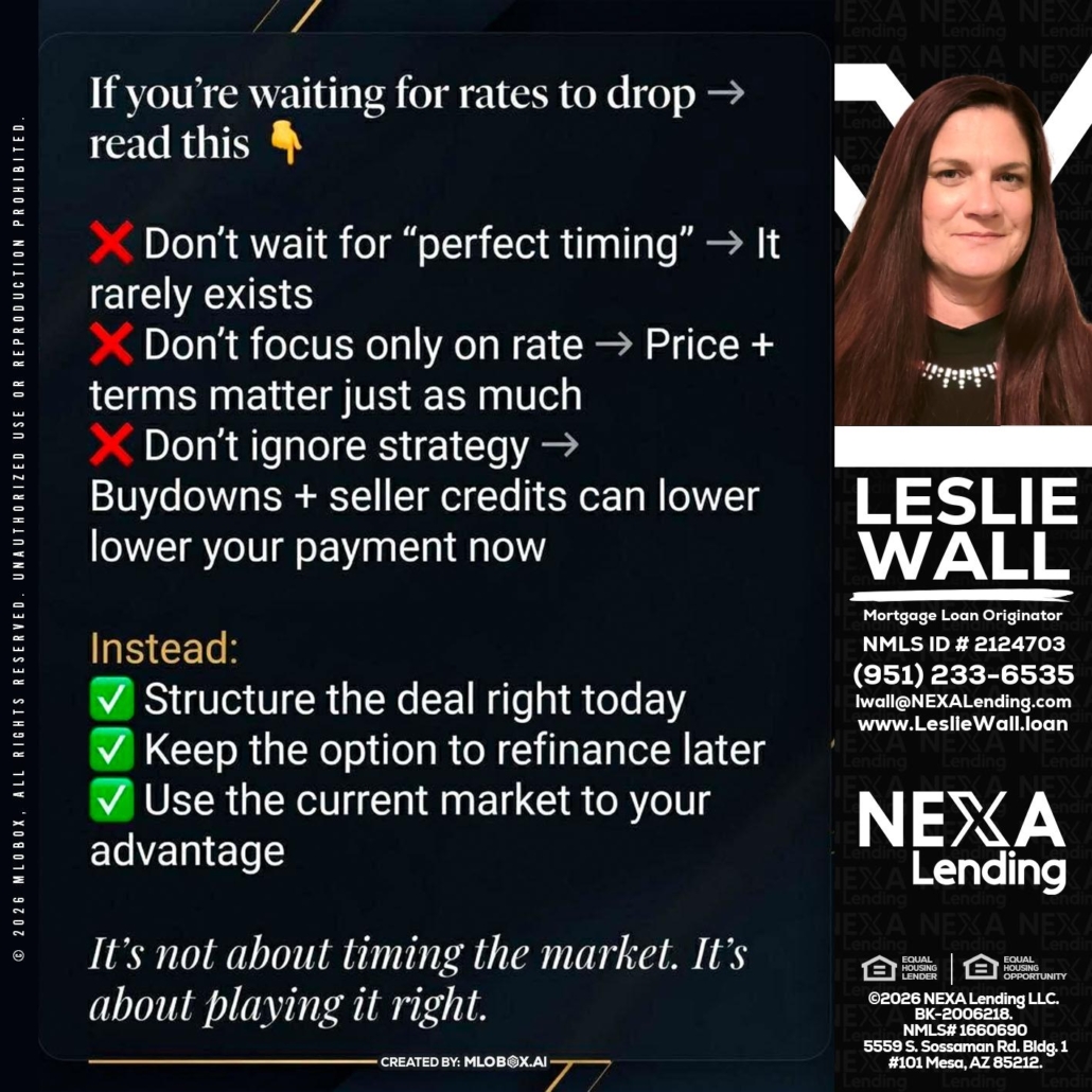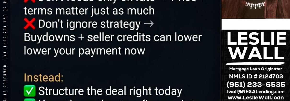 Hi, my name is Leslie Wall. I’m a Loan Officer with NEXA Lending LLC., offering personalized mortgage solutions, fast customized quotes, great rates and service with integrity.