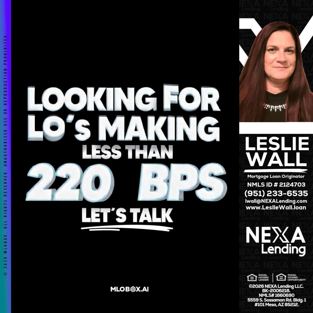 Hi, my name is Leslie Wall. I’m a Loan Officer with NEXA Lending LLC., offering personalized mortgage solutions, fast customized quotes, great rates and service with integrity.