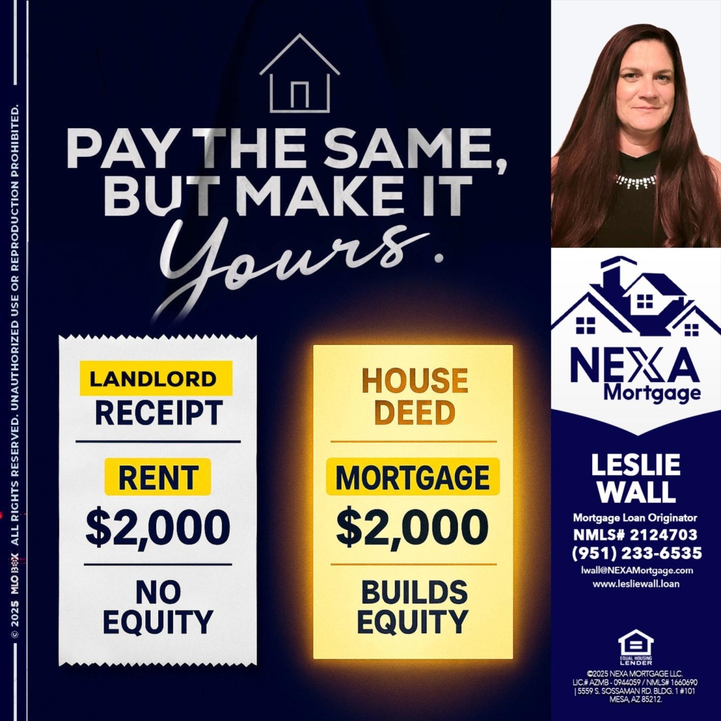 Hi, my name is Leslie Wall. I’m a Loan Officer with NEXA Mortgage LLC., offering personalized mortgage solutions, fast customized quotes, great rates and service with integrity.