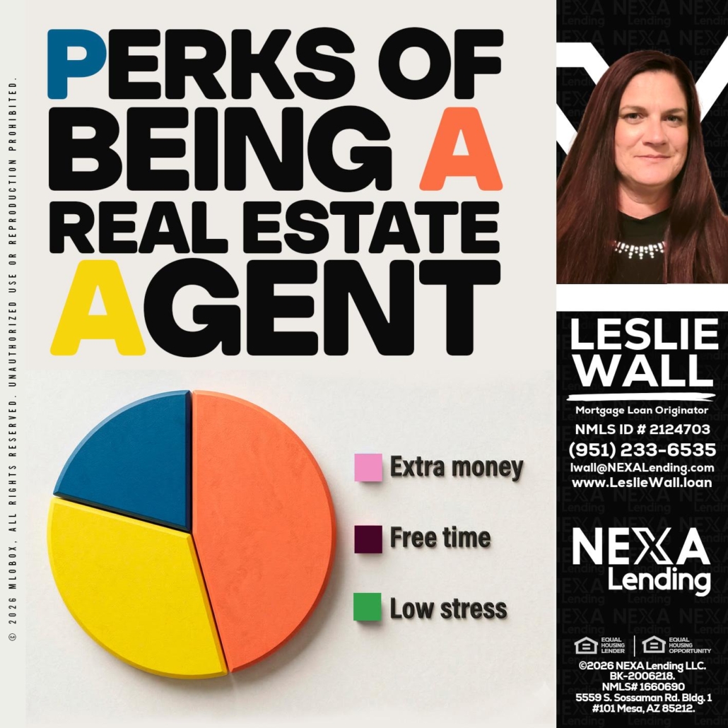 PERKS OF BEING - Leslie Wall -Mortgage Loan OriginatorHi, my name is Leslie Wall. I’m a Loan Officer with NEXA Lending LLC., offering personalized mortgage solutions, fast customized quotes, great rates and service with integrity.