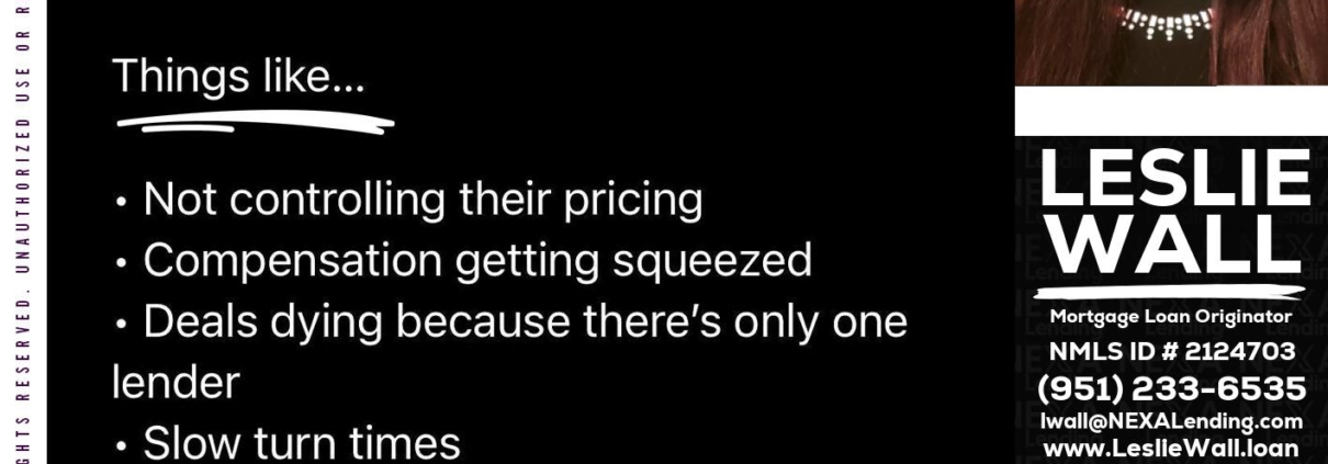 Hi, my name is Leslie Wall. I’m a Loan Officer with NEXA Lending LLC., offering personalized mortgage solutions, fast customized quotes, great rates and service with integrity.